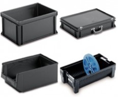 Conductive ESD (electrostatic discharge) storage products protect electronic components against electrostatic discharge.